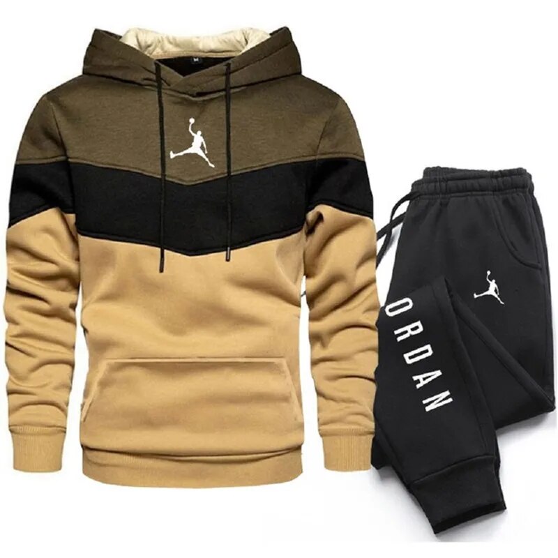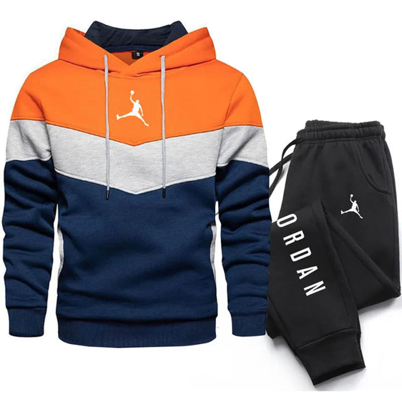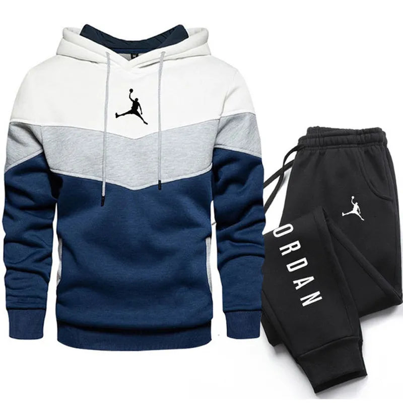 Men's Hoodies Sets Fashion Splicing Hooded Sweatshirt + Sweatpants 2PCS Outfits Streetwear Tracksuit Male Spring Autumn Clothes
