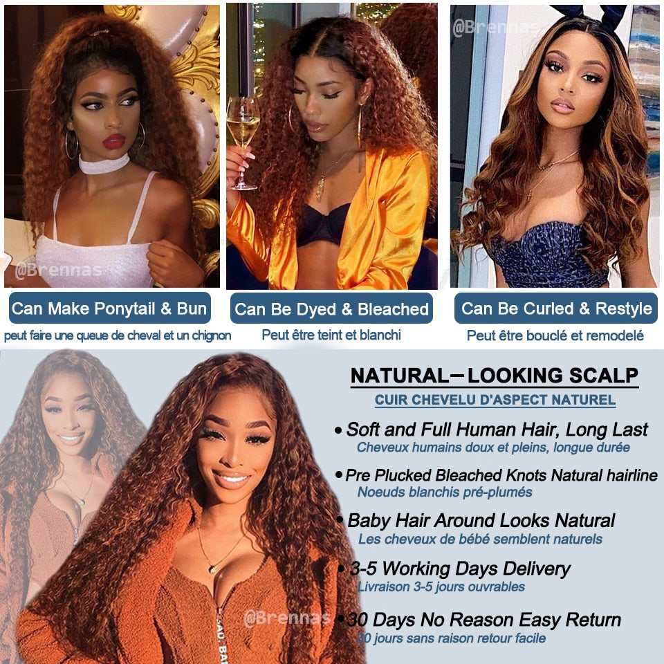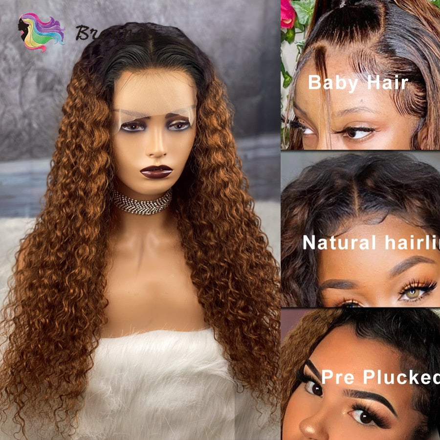 Ombre Curly Lace Front Human Hair Wigs For Women Bleached Knots Density180 Preplucked 13x4 Brazilian Hair Curly Lace Frontal Wig