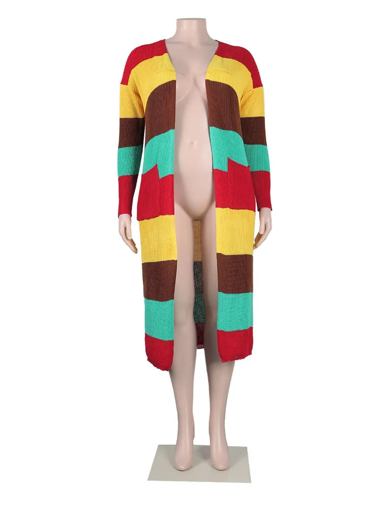Wmstar Plus Size Outwear Women Cardigans Fall Winter Clothes Sweaters Coat Fashion Long Top with Pockets Wholesale Dropshipping